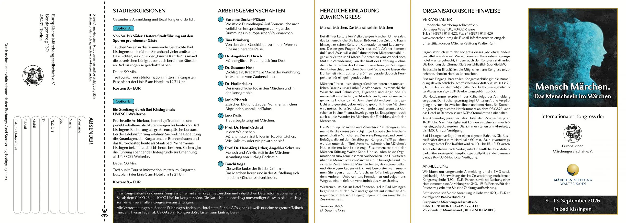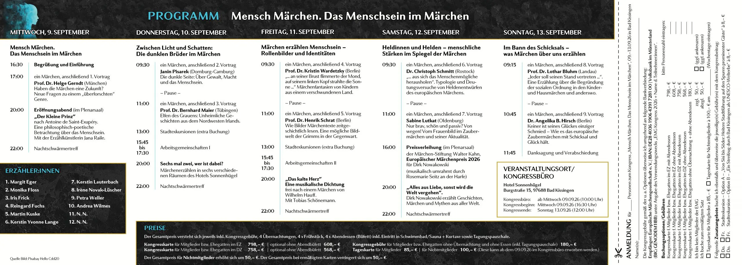 Die Anmeldung erfolgt ausschließlich über die Europäische Märchengesellschaft e.V. Bitte nutzen Sie den Antwortbogen des Flyers.